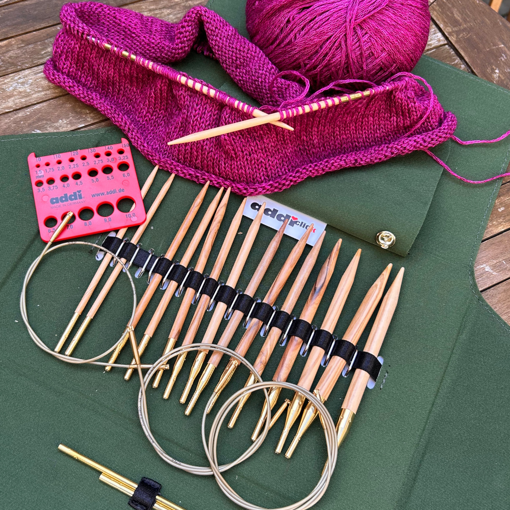 If you have ever wondered what it feels like to knit with olive wood, the addiClick Nature Olivewood interchangeable knitting needle set provides the answer. When I first opened the olive-green case, the rich grain of each tip immediately stood out. Every pair is unique, which gives the set a warmth and individuality that you do not find with metal or plastic needles.