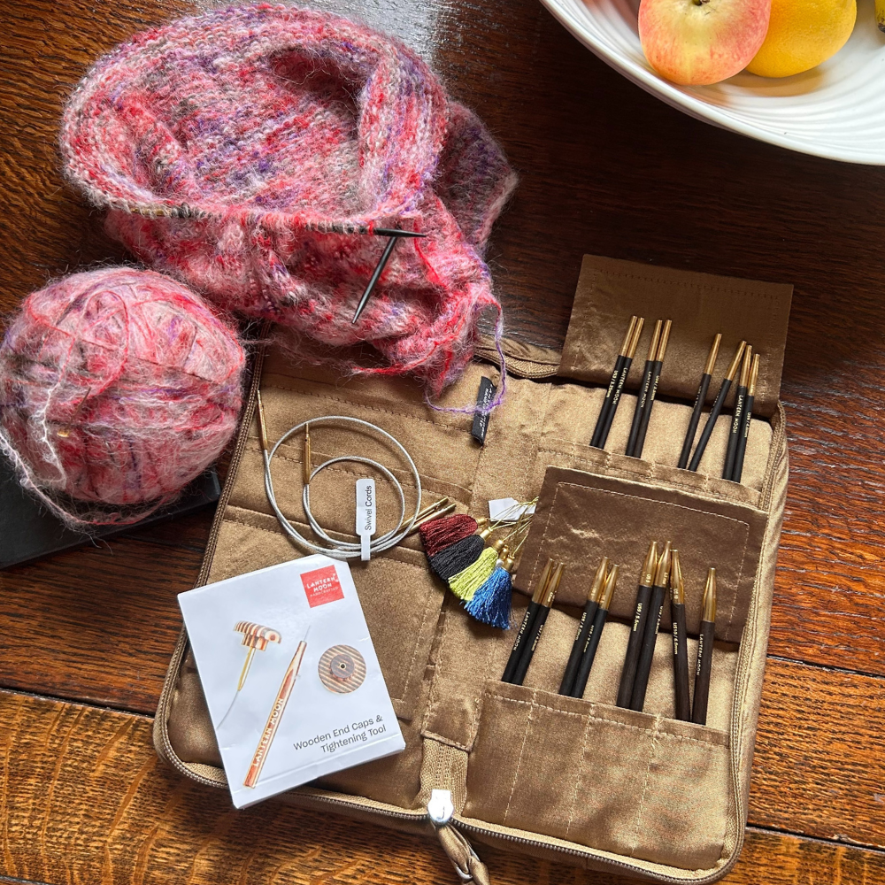 The details make this set a joy to use. Tassel stitch markers add colour and fun, while wooden end caps and tightening tools provide practical functionality. The machine-washable khadi silk case, decorated with an embroidered floral motif, is both beautiful and durable. It keeps everything secure without requiring delicate care.