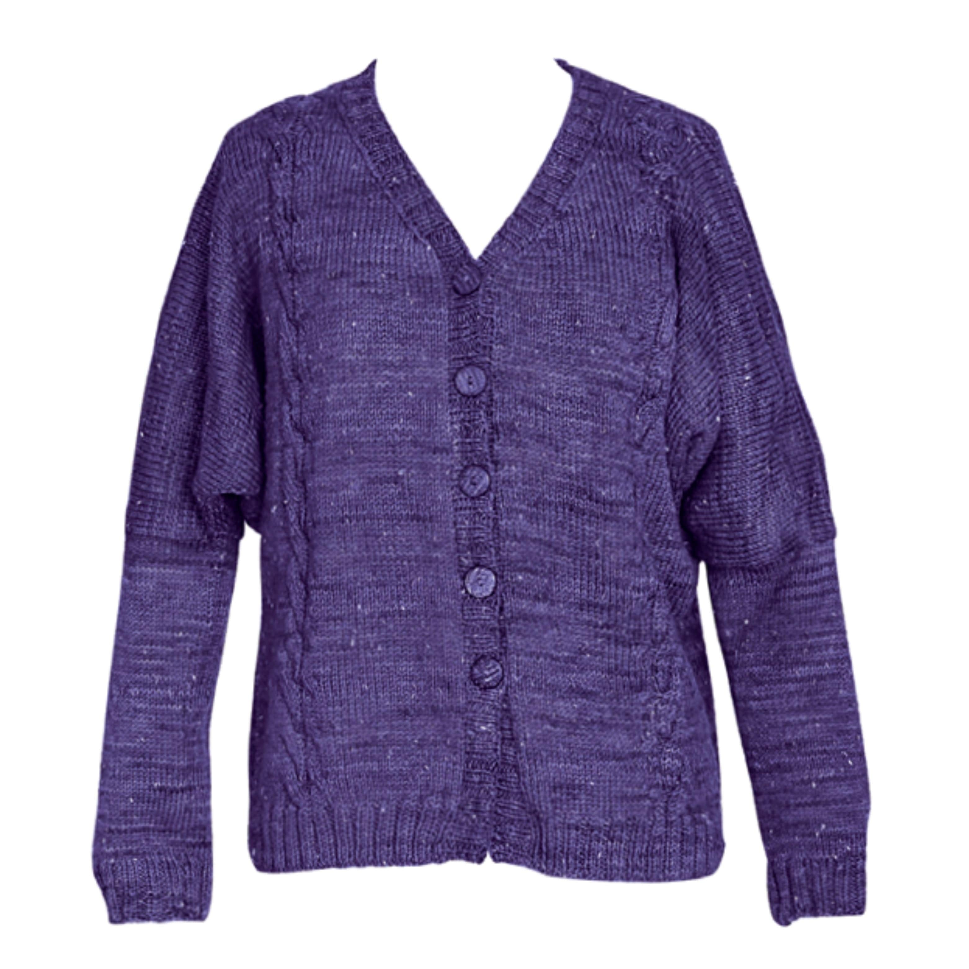 The cardigan is available in 4 sizes to fit busts of 90 - 121cm (36 - 48 1/2").