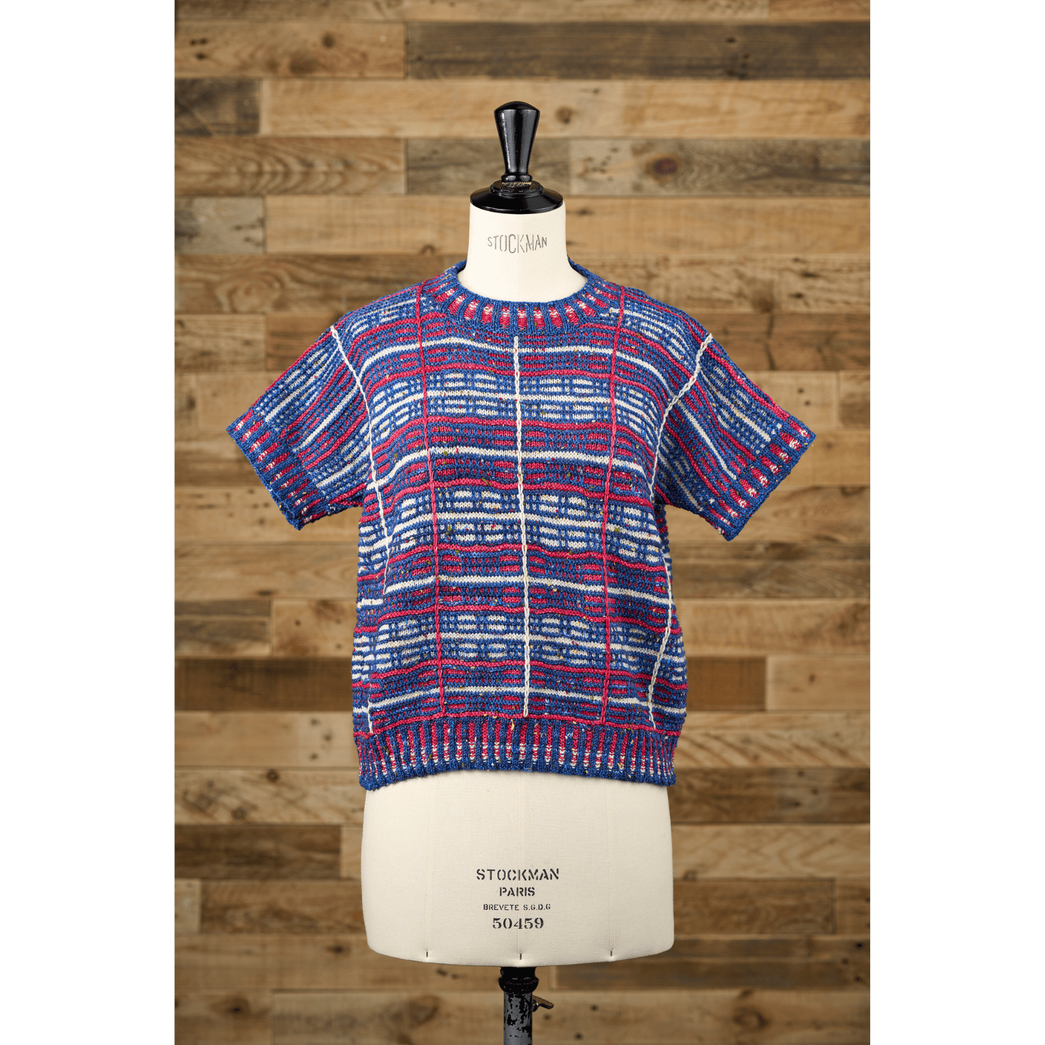 This tartan T-shirt is worked in a slip stitch pattern and has embroidered chain stitch details over the ridges of the garter and stocking stitch pattern to enhance the tartan effect.